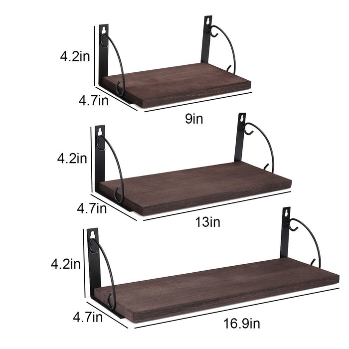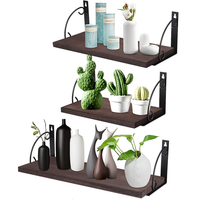 Trævægmonterede hylder, 3-lags - gør-det-selv-opbevaring og displayhyldebeslag - ideel til organisering af boligindretning og personlige ejendele