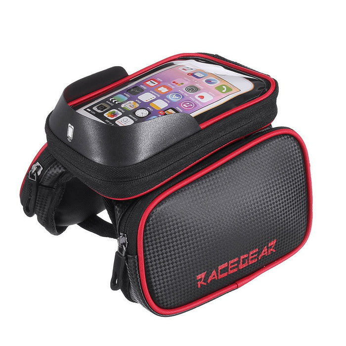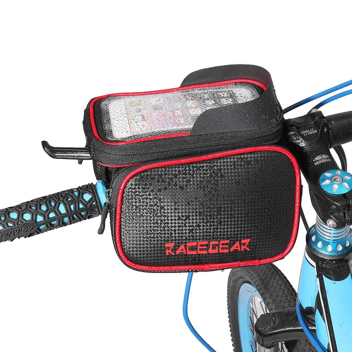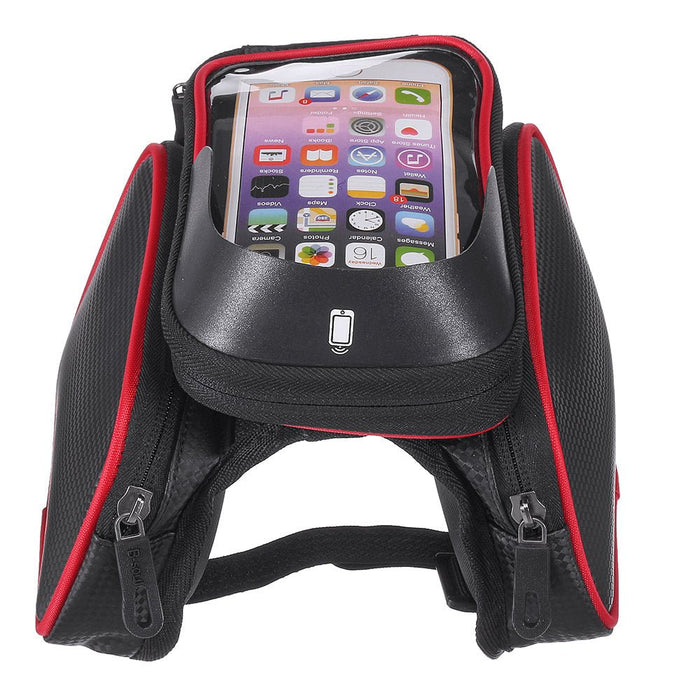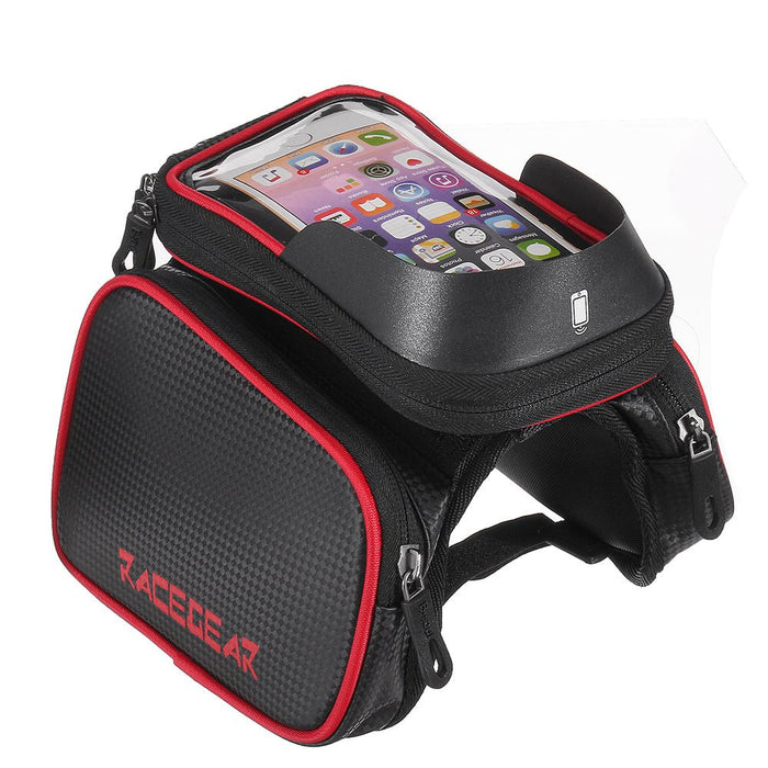 Mobiltelefon kerékpár első táska – 6,2 hüvelykes érintőképernyős tok, kétoldali csőtáska – Ideális kerékpárosok számára, akiknek könnyű telefonhozzáférésre van szükségük