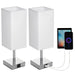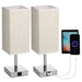 Bordlampe med stoffskjerm - Varmhvit LED-pære, berøringskontroll, skrivebordslampe, USB A- og Type-C-ladeporter - Ideell for nattbord, arbeidsbord og studieområder