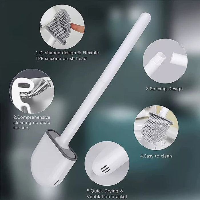 WIKHOSTAR Szczotka do WC montowana na ścianie Płaska silikonowa główka szczotki Szczotka do WC Zestaw szczotek do czyszczenia WC Szczotka do czyszczenia WC Łazienka