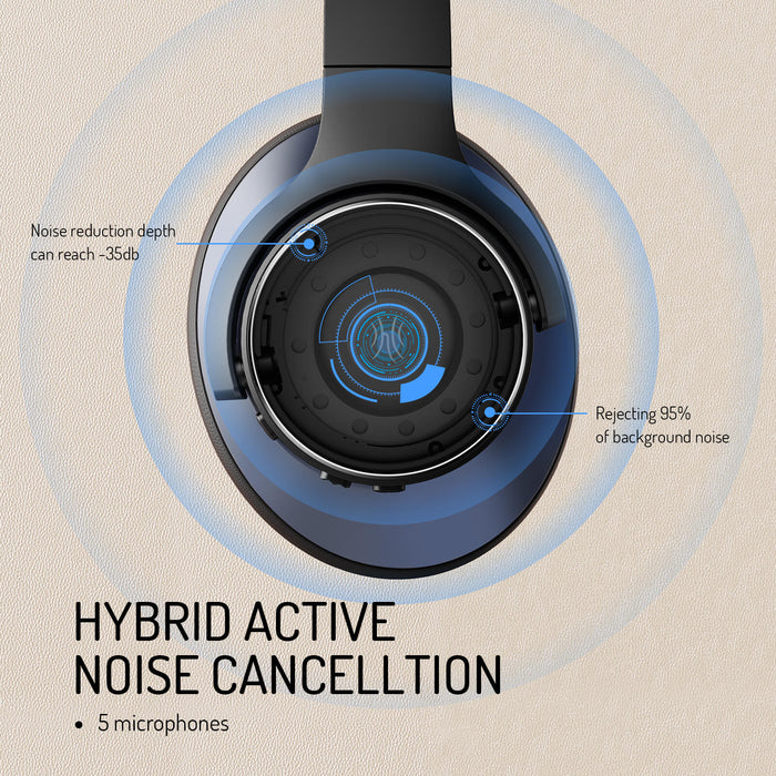 Oneodio A Series - Bluetooth 5.0 Active Noise Cancelling Wireless Headphones - Built-in Microphone, Type C Charging & Carry Case - Extended 2 Year Warranty Included