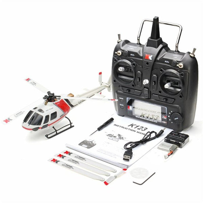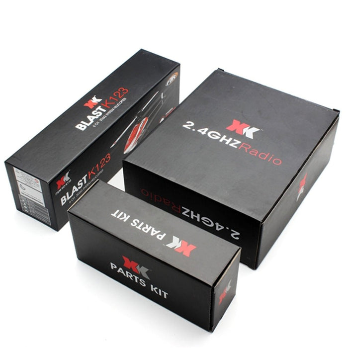 Vyberte si z dvoch možností balenia: balíky Ready-to-Fly (RTF) alebo Bind-and-Fly (BNF). Obe súpravy obsahujú RC helikoptéru K123, hlavnú a chvostovú lopatku, hlavný prevod, USB nabíjačku, Li-Po batériu, skrutkovač a imbusový kľúč. Súčasťou balenia RTF je aj vysielač pre vaše pohodlie.